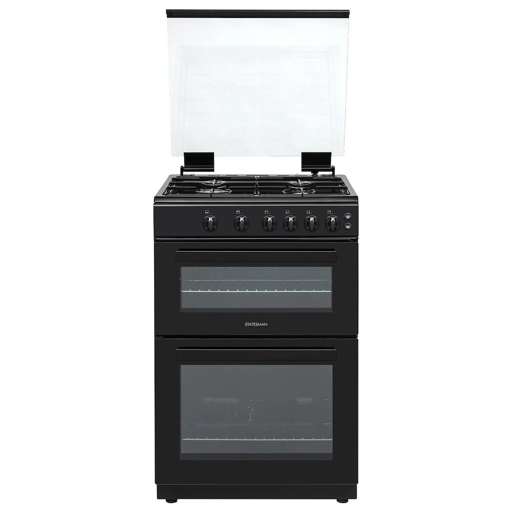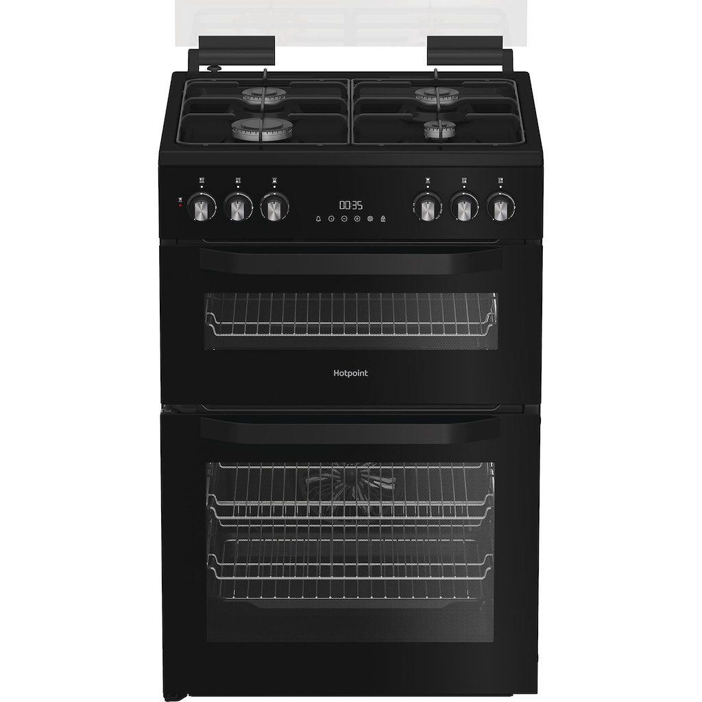 Hotpoint HDG6GDCWX 60cm Freestanding Gas Double Oven Cooker with Glass Lid